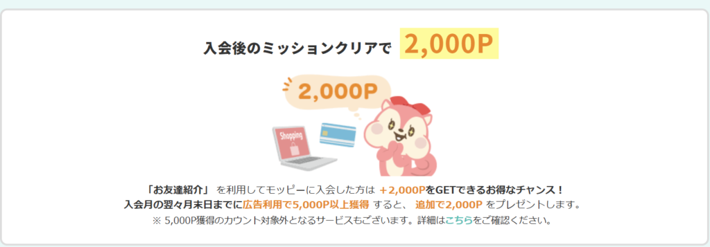 紹介特典として、条件達成であなたに2,000ポイントが入ります!